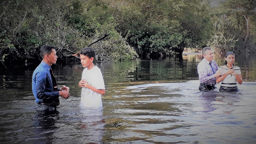 O ato de confissão de fé 38 novos membros submeteram-se a um símbolo bíblico que demostra o novo nascimento espiritual, repetindo desde os tempos primitivos o gesto de João Batista quando batizou Jesus Cristo.